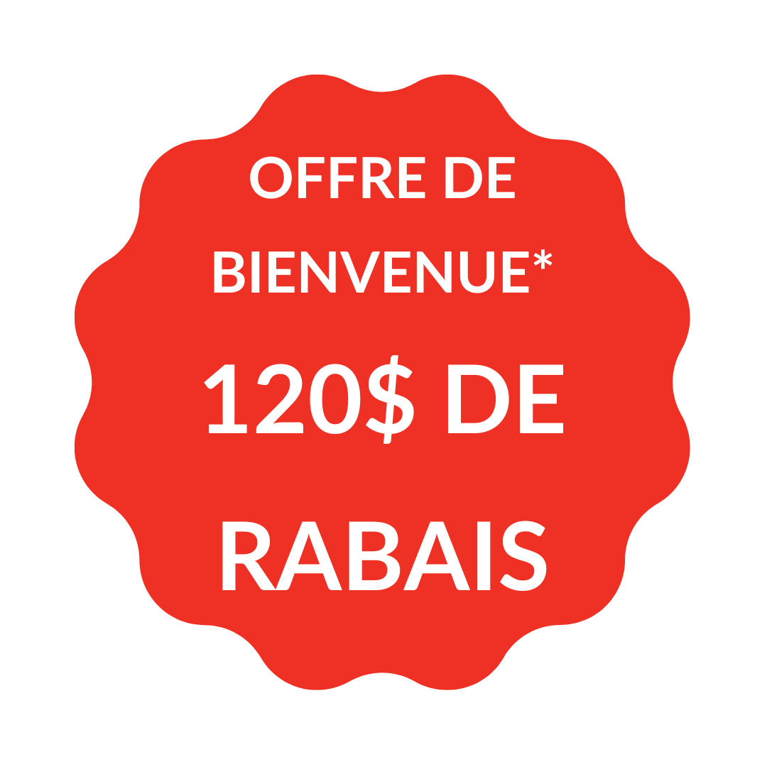 120$ au total de rabais sera applicable sur vos 8 premières commandes